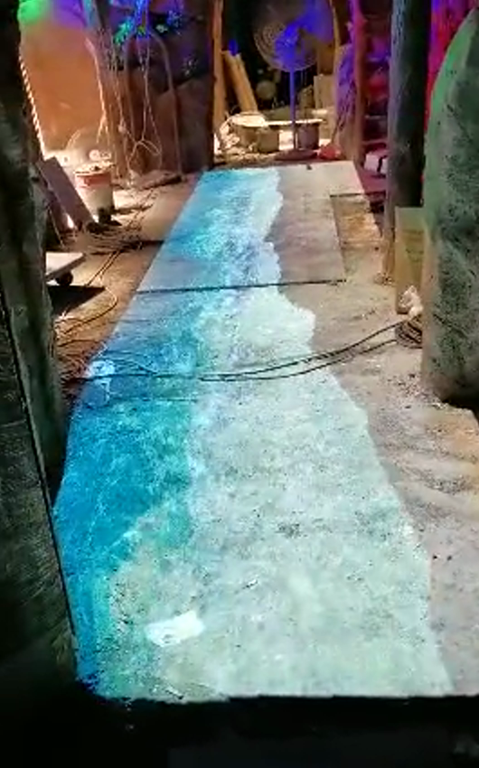 地面互动投影系统是集虚拟仿真技术、 图像识别技术于一身的互动投影项目, 包括水波纹、翻转、碰撞、擦除、避让、跟随等表现形式。